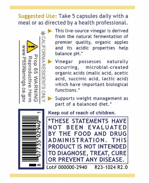 Premier Apple Cider Vinegar (ACV) offers pristine, organically cultured Apple Cider Vinegar (ACV) created with our signature probiotic-cultured technology. It delivers the outstanding benefits of low temperature, air-dried apple cider vinegar, wrapped up into a convenient capsule form. This ancient folk elixir has graduated from the kitchen to the nutrition cabinet as science has demonstrated its wide-reaching effectiveness in many areas of overall beneficial support.*