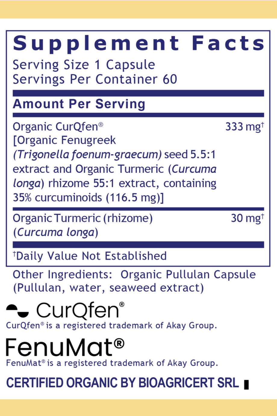 At the core of Curcumin-FXTM is clinically studied CurQfen®, a patented FenuMat® turmeric-fenugreek fiber complex shown to enhance absorption of free curcuminoids, the biologically active form responsible for curcumin’s systemic benefits.* Unlike standard curcumin or piperine-enhanced extracts, CurQfen® delivers significantly higher plasma levels while supporting targeted delivery throughout the body, including the brain.*