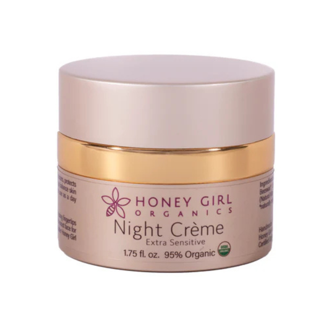 Soothe and renew sensitive skin overnight with Honey Girl Organics Extra Sensitive Night Crème.