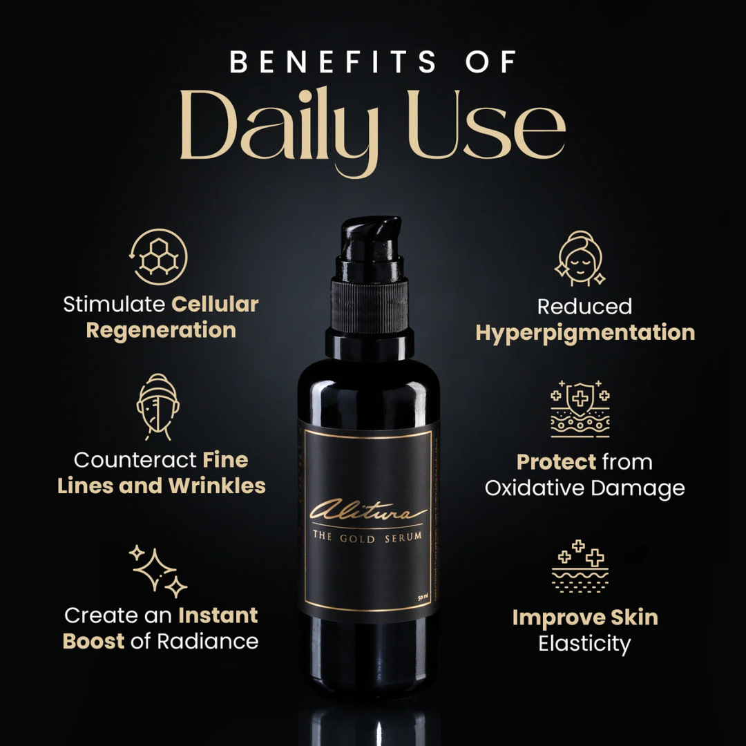 Transform your skincare with The Alitura Gold Serum—because your skin deserves nothing less than gold-standard nourishment.