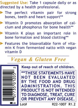 The vitamin K2 in this formula includes an amazing group of compounds that cover all the bases of absorption, bioavailability, and transport by the body.* Commonly found in fermented soy, vitamin K2 concentrates in vascular tissues and can support healthy arterial blood flow and vascular elasticity.*
